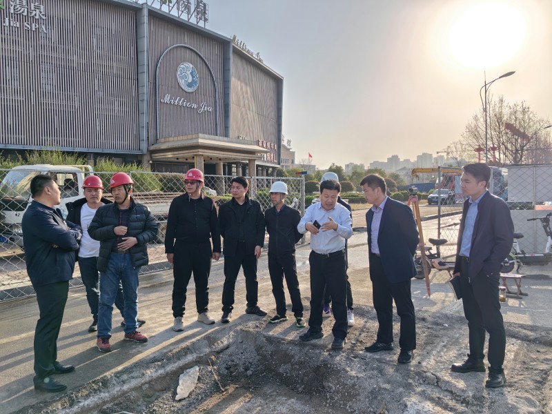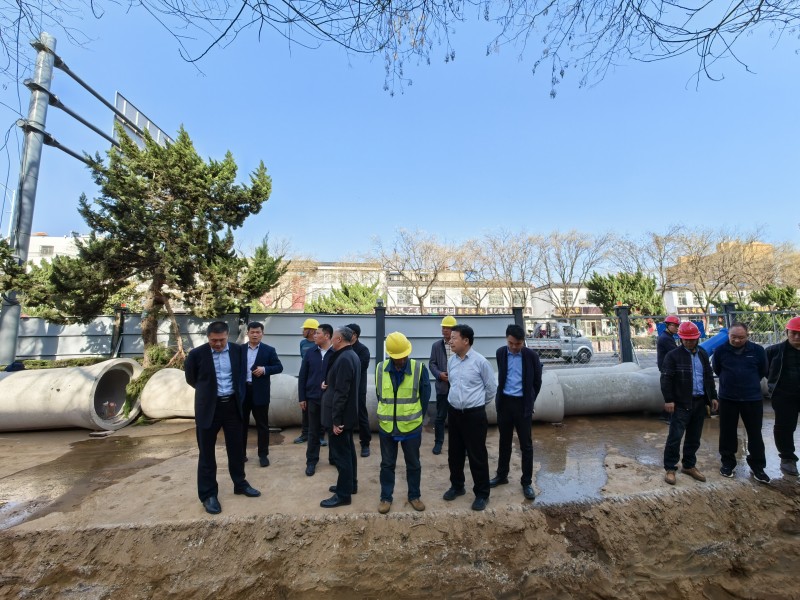 城乡水务局副局长王军伟、水利服务中心主任庄新和水务发展集团董事长李亚峰、副总经理马运科视察督导雨污合流改造工程、再生水工程。中辉建设工程有限公司刘宜伟和浩润经营水务公司李振负责陪同,现场对雨污合流改造工程、再生水工程的施工进度、施工安全,提出明确要求。